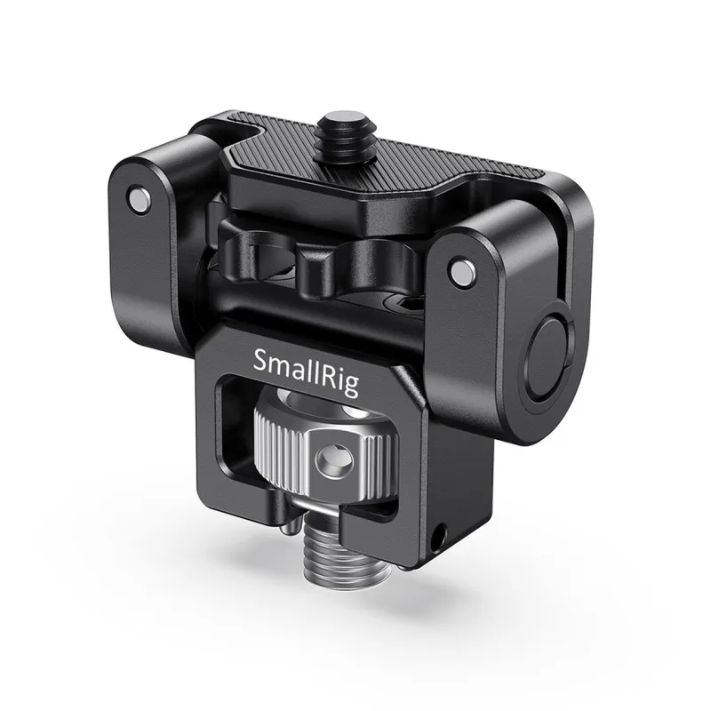 SmallRig Swivel Monitor Mount with Arri Locating Pins 2174 is designed to hold your monitor onto a camera cage or handle via the arri 3/8”-16 screw. It enables to adjust the position of monitor up to 180 degree. The monitor mount is compatible with 5 inch or 7 inch monitor and supports monitor up to 1.5kg. Additional, it features a tool free 1/4”-20 screw to lock monitor on the other end. When not in use, the mount simply folds away for storage.