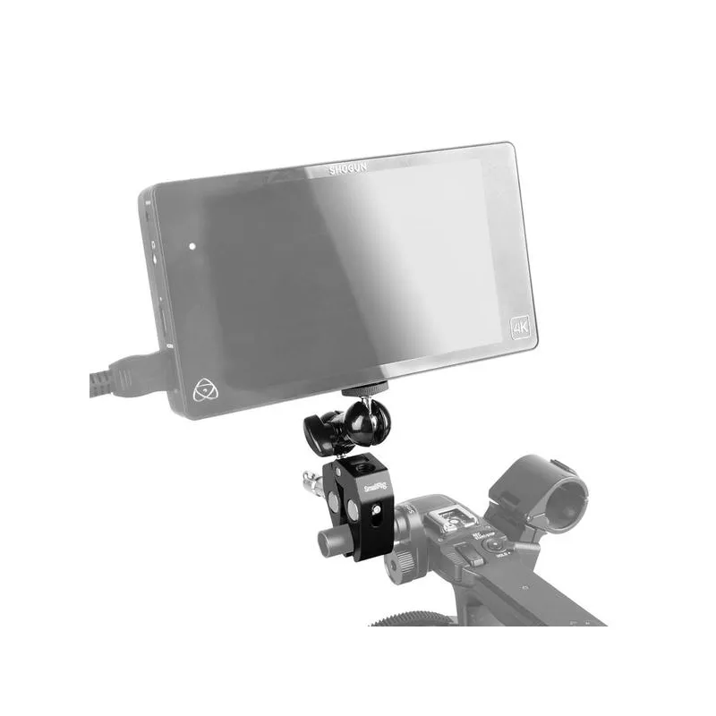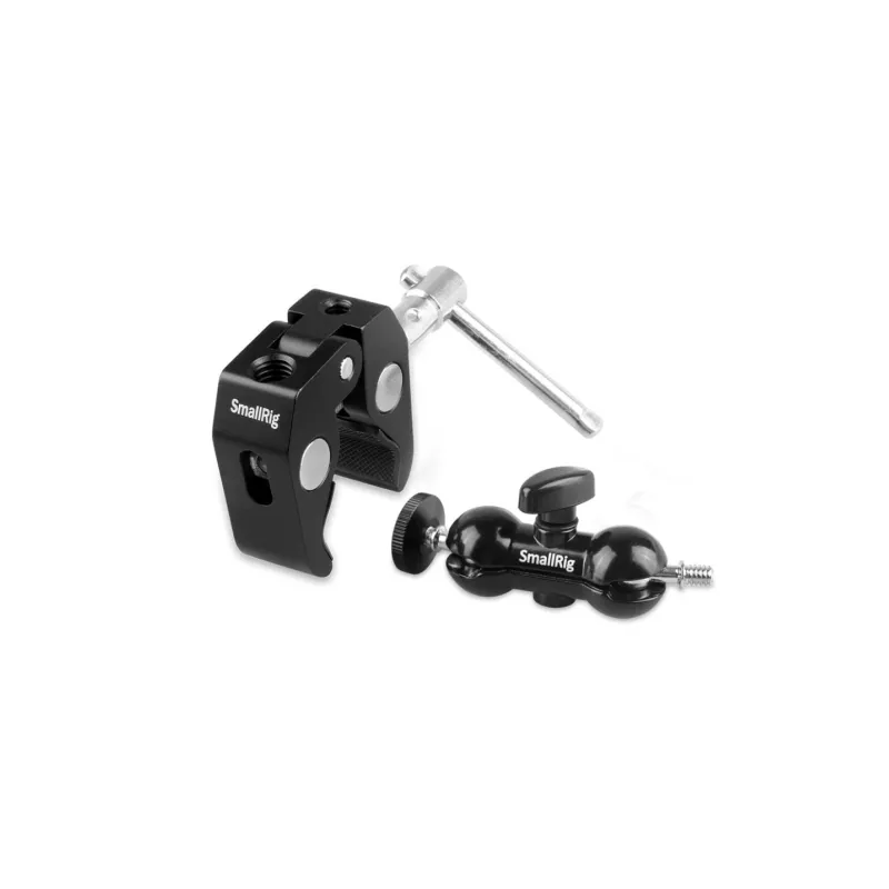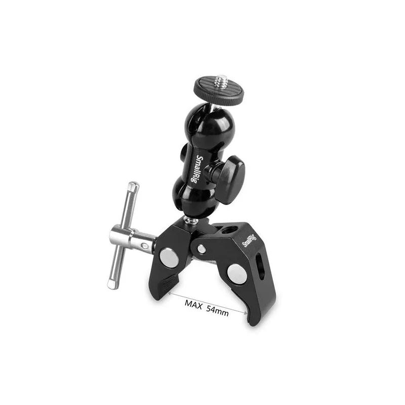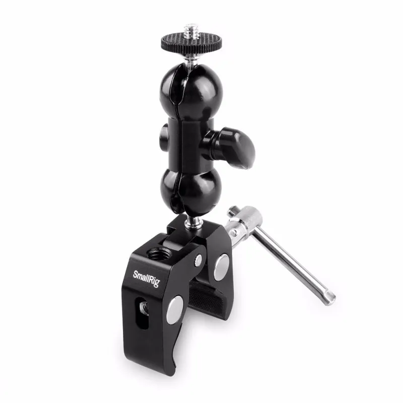 Суперзажим SmallRig с шаровой головкой SmallRig Super Clamp с отверстием для зажима от 15 до 40 мм может крепиться к поперечинам gimbal таких устройств, как DJI Ronin и FREEFLY MOVI Pro.portШарнирный кронштейн с шаровой головкой оснащен крепежным винтом 1/4"-20 для крепления мониторов, осветительных приборов и других аксессуаров весом до 3,3 фунта. Небольшая длина кронштейна позволяет держать дополнительные аксессуары близко. Суперзажим также может быть прикреплен к 15-миллиметровым стержням на кейсе камеры или ригеле для крепления port монитора или другого аксессуара.