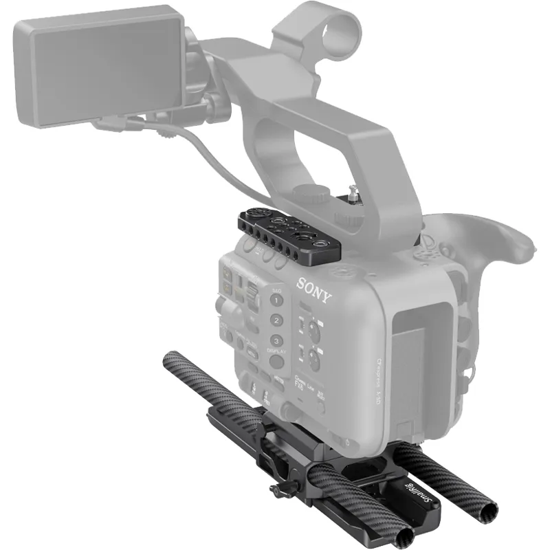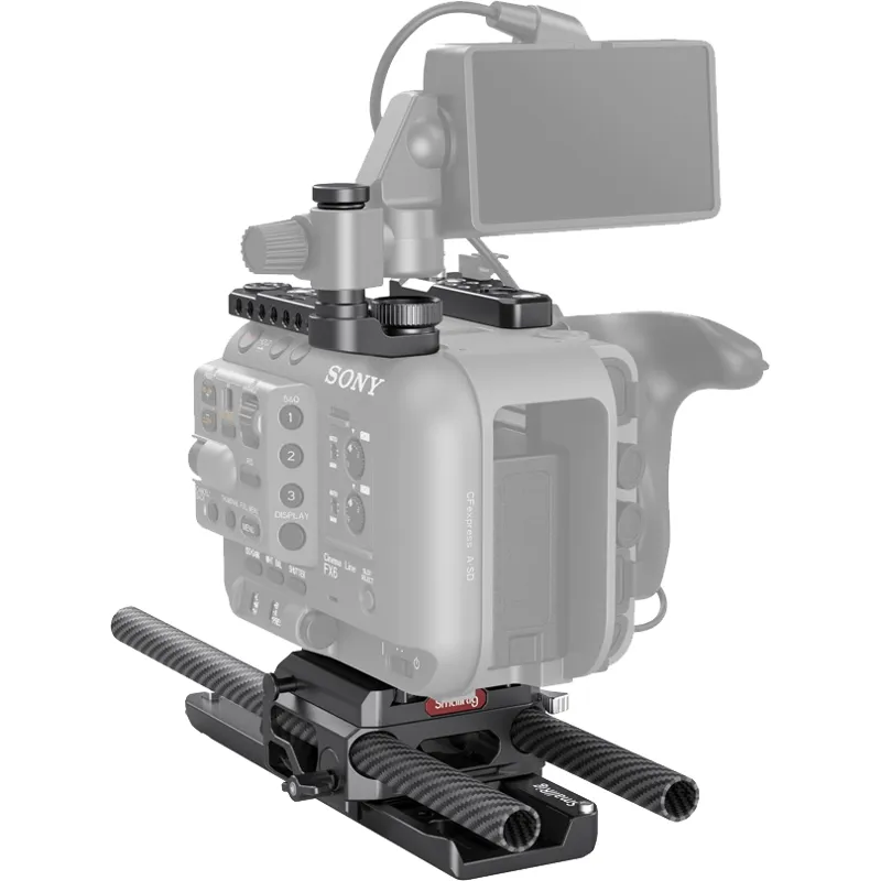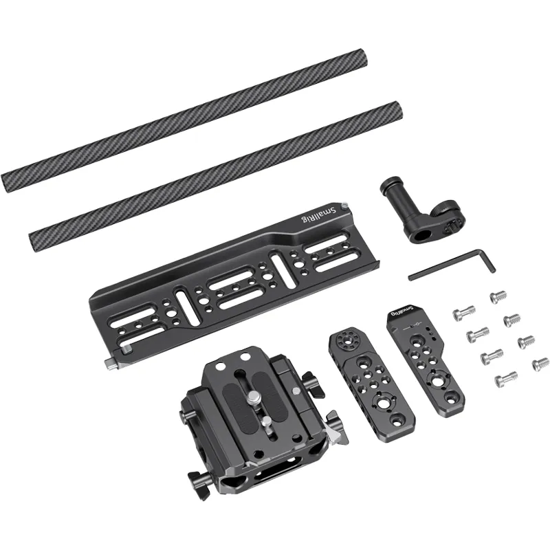 SmallRig Pro Kit for SONY FX6 3225 provides the solution to quick switch between tripod shooting and handheld shooting. Two top plates fit the original handle and come with multiple mounting points such as 1/4”-20 threaded holes and ARRI 3/8" -16 locating holes to support magic arms and handles. It comes with an ARRI baseplate that is compatible with dovetail plate and adjustable based on the center of gravity of camera. Manfrotto quick release plate on the top of the baseplate enables switch between tripod mode and handheld mode.