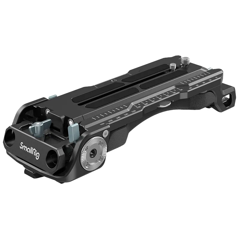 The front and rear ends of the double bar system have a standard diameter of 15 mm and a pitch of 60 mm. In addition, the front end of the double rod system can spare 24 mm for upward adjustment, which can guarantee that the lens center distance of FX9, FS5, URSA MINI, CANON C300 and other devices will be 85 mm as standard. To make it easier for users to adjust the center of gravity of the device and install the follow focus and matte box, the 2837 can be adjusted forward by approximately 80mm via the built-in Manfrotto 501 quick release plate, and the front two tubes can be adjusted together with the quick release plate, so there is no need to disassemble devices such as the follow focus and matte box. There is a dedicated 1/4"-20 threaded hole on the right side of the 2837 that can be used to install the magic arm and other products. The shoulder pad uses a new silicone shoulder pad that conforms to the shape of human shoulders and is soft and comfortable. In addition, the built-in 2837 flat wrench can be used upon request.