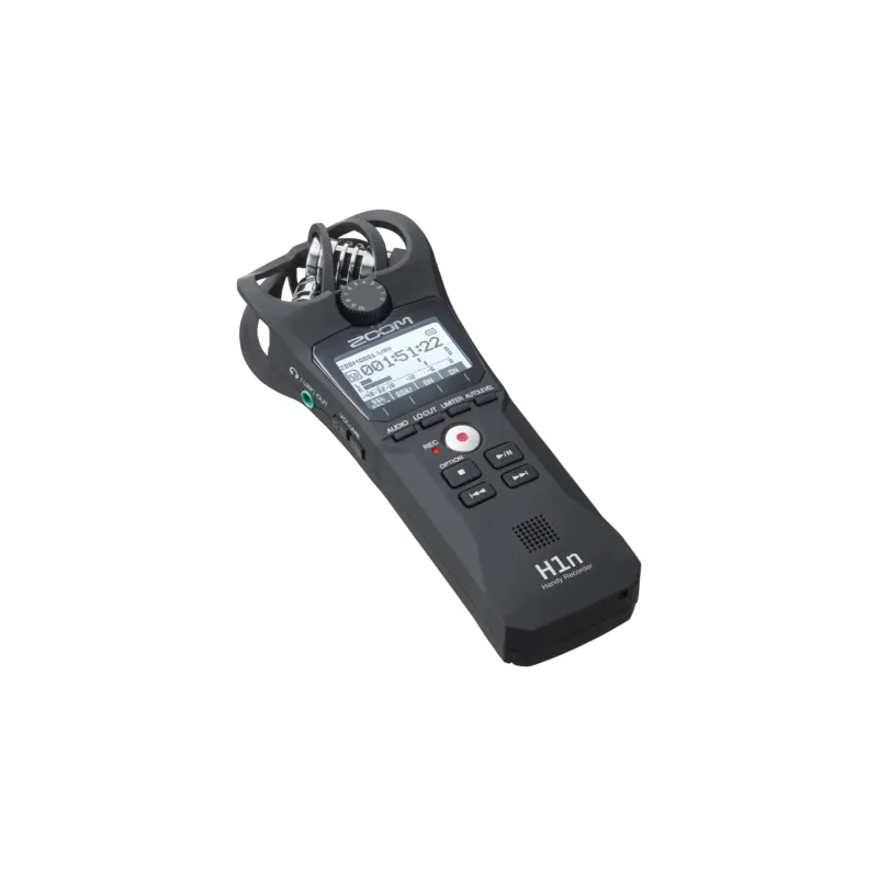 The H1n is geared for musicians, journalists, podcasters, and more, recording WAV and MP3 files to meet your professional needs. The H1n has a stereo X/Y microphone configuration that captures a realistic stereo image. The unit records audio to microSD or microSDHC flash memory cards, supporting capacities up to 32GB. The H1n records WAV audio at rates up to 24-bit / 96 kHz, and MP3 audio at rates up to 320 kbps. The pocket-sized device runs on two AAA batteries, providing up to 10 hours of continuous operation.