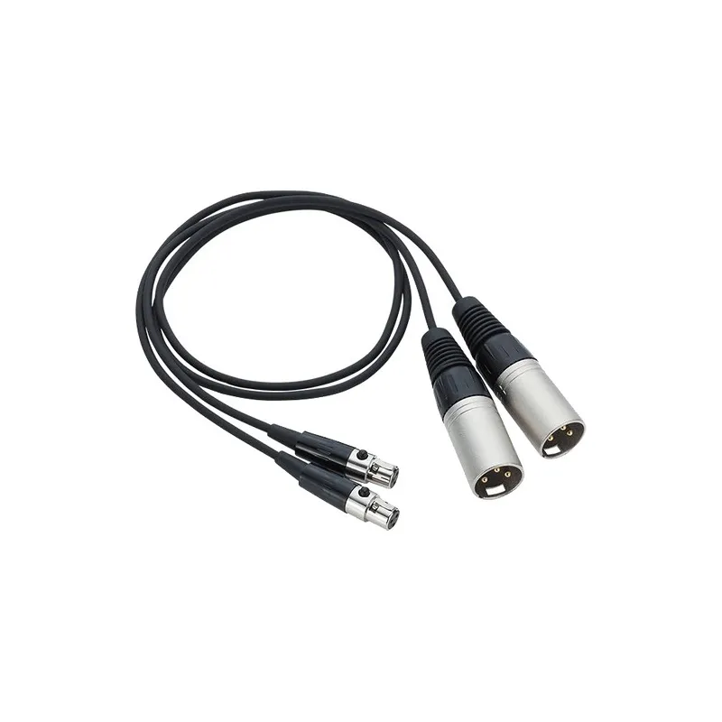 The pair of TXF-8 TA3 to XLR Cables from Zoom consist of a mini-XLR (TA3) female connector on one end, and a 3-pin XLR male connector on the other end. These cables allow you to connect the mini-XLR (TA3) balanced outputs of the F8 or F8n multitrack field recorder to the XLR input of other devices like mixers, PA systems, and more.