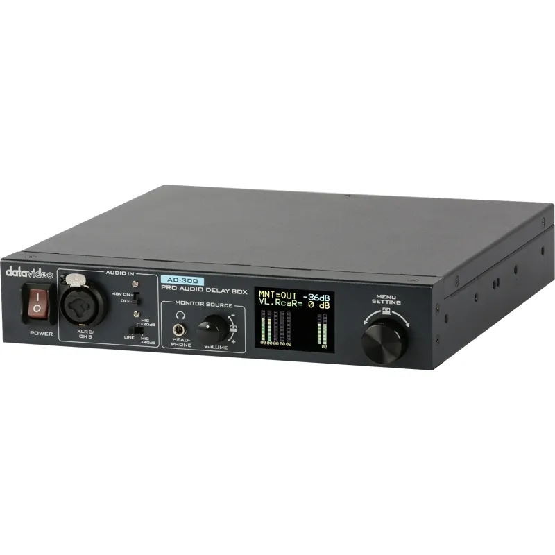 The AD-300 professional audio delay device has a 3000 ms audio delay range, and each input can be adjusted individually in milliseconds to achieve professional-grade sound and video synchronization.