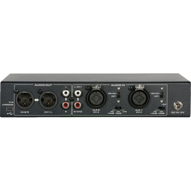 Switchable for Microphone input or Audio Line input and Supports XLR mic in and +48V phantom power.