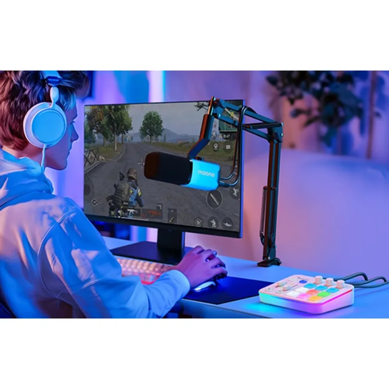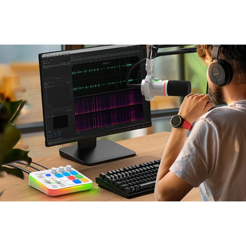 Maono G1 Neo - это универсальная звуковая карта, которая улучшает качество трансляций и записей с профессиональным звуком, интуитивным управлением и яркой RGB подсветкой. Компактный дизайн позволяет легко разместить ее на столе, а XLR вход обеспечивает быструю установку микрофона.