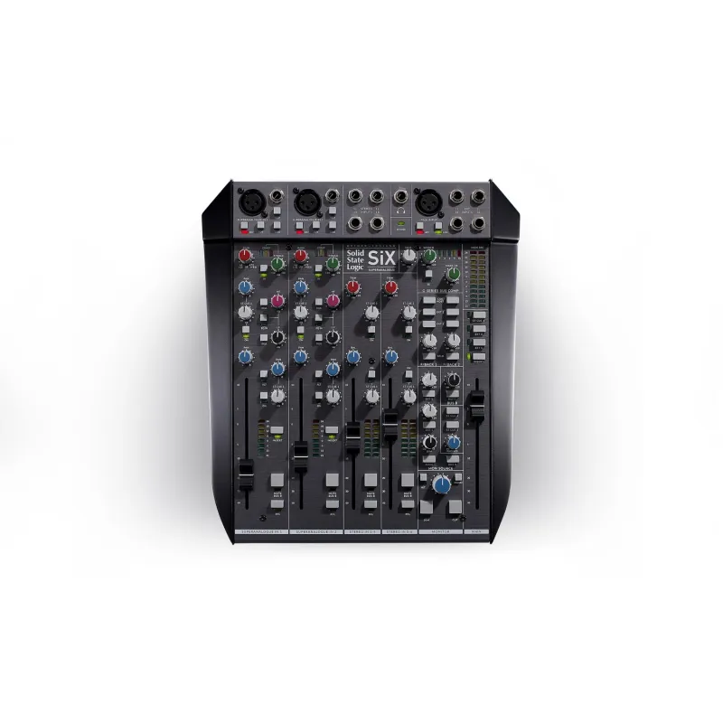 SiX is a condensed professional console for use in the studio, in post-production, on stage, and for podcasting. SiX offers big console sound and an impressive set of utility features in a format that is small enough to stick in a bag a go wherever you need it. SiX is stunning value; it offers two recording channels with SuperAnalogueTM mic pres, two band EQ, an essential one knob version of the classic SSL Channel Compressor, a new two-band Channel EQ, inserts and 100mm faders.