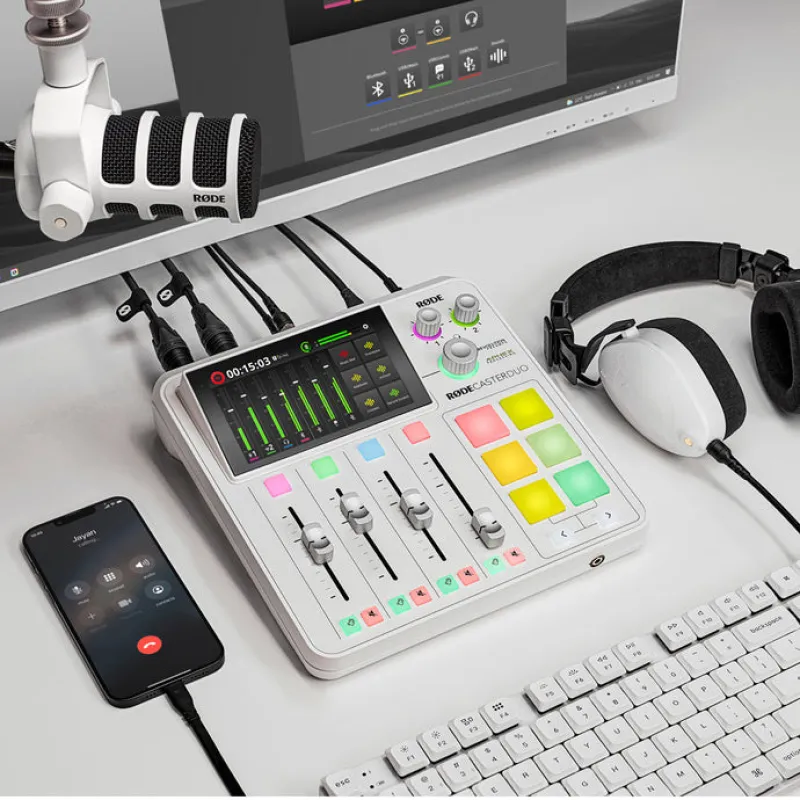 Rode RodeCaster Duo полностью настраиваемый, с семью индивидуально назначаемыми каналами и шестью программируемыми SMART-падами дл мгновенного запуска звуковых или голосовых эффектов и других действий.