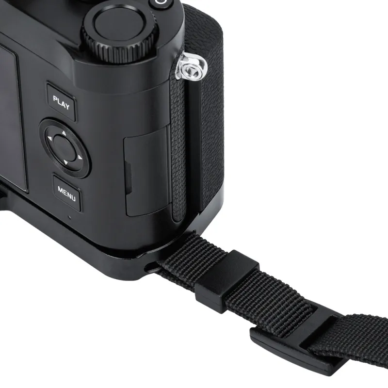 Резьба 1/4 20 на дне позволяет установить на штатив для большей стабильности при съемке. Кроме того, быстросъемная пластина Arca Swiss совместима с головками штативов Arca Swiss, что позволяет быстро устанавливать и снимать хват. У хвата также есть слот для крепления ремешка на запястье, например, JJC HS ML1M (продается отдельно).
