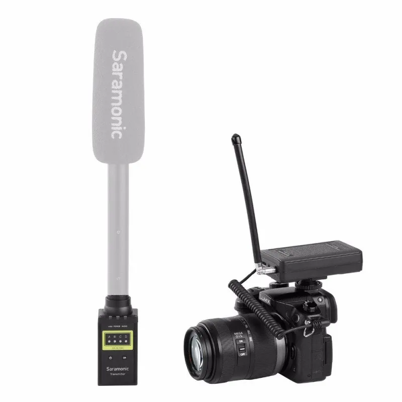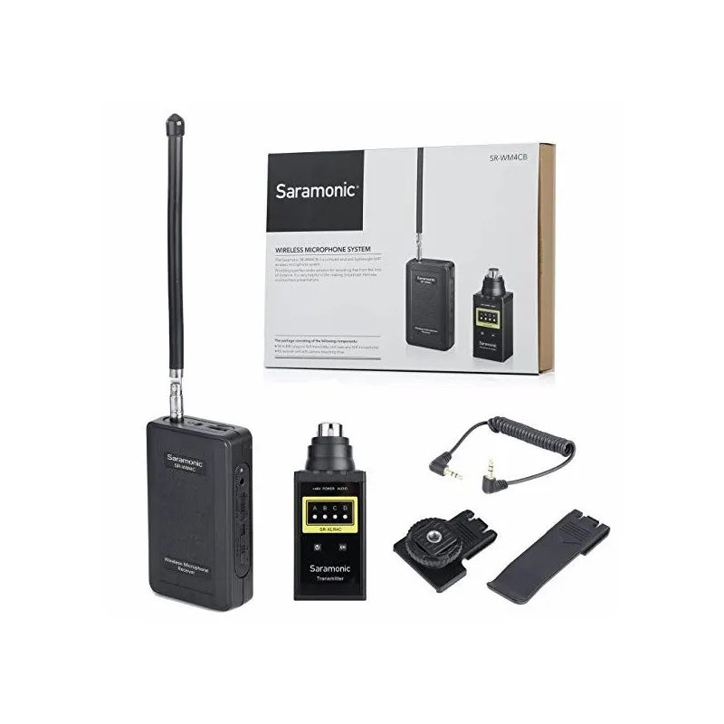 4-channel Lavalier VHF Wireless Microphone system with transmitter (plug-on) and receiver (RX).