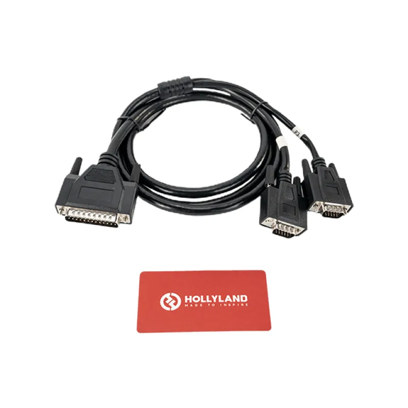 Этот кабель DB25 Male to Dual HDB15 Male Tally от Hollyland предназначен дл работы с беспроводной системой Tally. Длина кабел составлет 1,5 метра и он оснащен разъемами DB25 male и двойными HDB15 male.