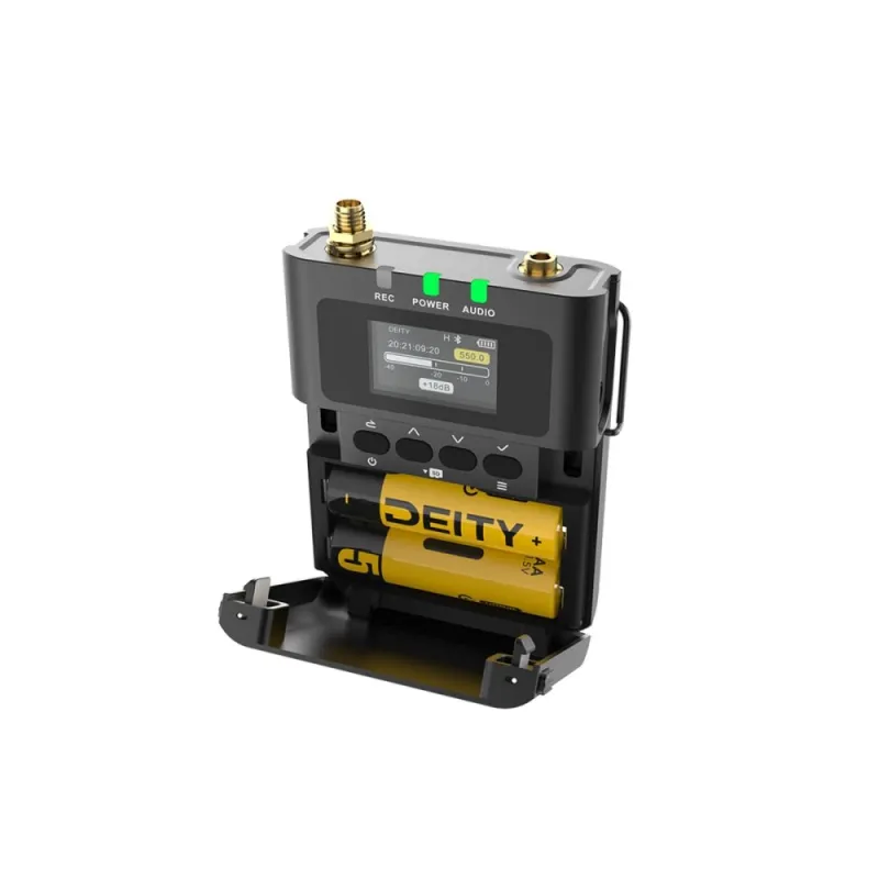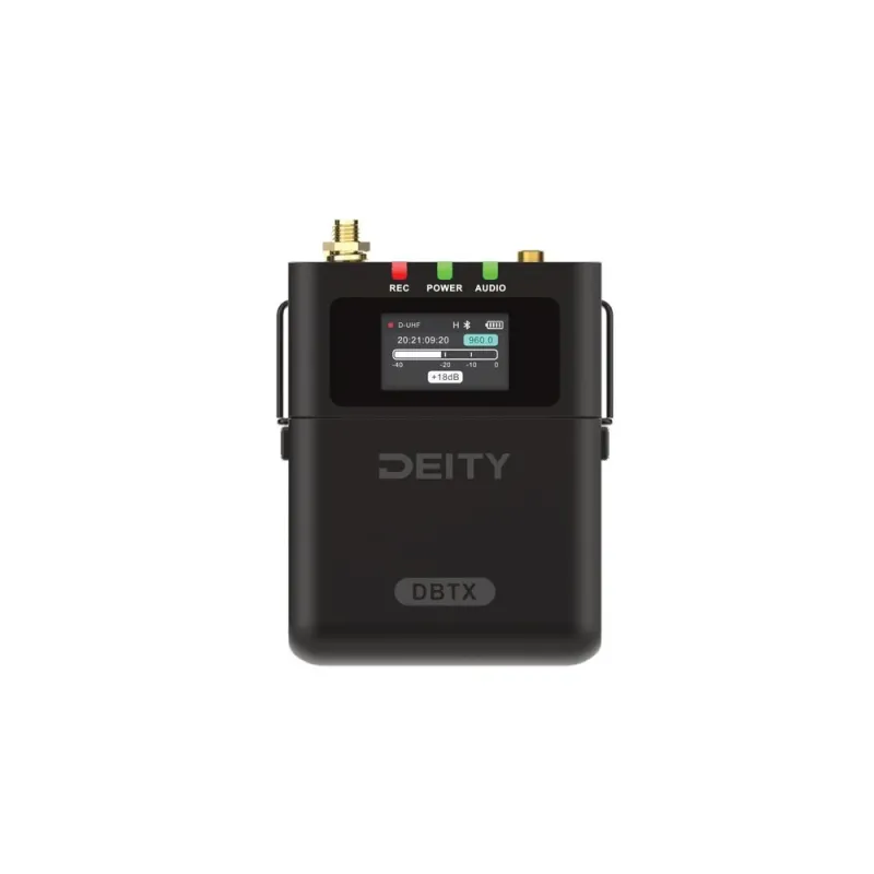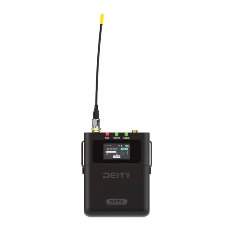 The transmitters feature a built-in recorder for backup files. The onboard recorder features both 24-bit and 32-bit float formats so you never have to worry about gain staging on your backup WAV files. Recordings are saved to a Micro SD card, up to 128Gb in size. And Theos’ most unique feature is that the transmitter can be natively synced wirelessly from the Deity TC-1 timecode generator. Timecode ensures your backup WAV files will sync with your master file in post-production. Alternatively, the DBTX can be synced via the 3.5mm jack if you are using 3rd party timecode generators.