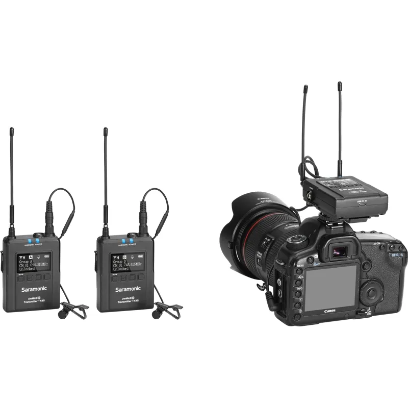 The Saramonic UwMic9s wireless microphone system provides a premium 2-person wireless audio solution for Broadcast & TV, ENG, filmmakers, vloggers, mobile journalists and content creators for a remarkable price. It is an easy-to use, high-quality and flexible UHF system. The external input allows the receiver to be connected to a mic or line level device, such as a shotgun microphone, mixer, recorder or music player to capture additional sound or music. The system can be powered through its USB-C ports, allowing it to run for numerous hours on a USB-C 5V power bank.