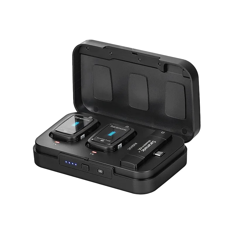 The Saramonic Blink500 ProX B6 Wireless Audio Transmission Kit (RXUC + TX + TX) is the perfect choice for vloggers, journalists, youtubers, tiktokers and web creators. In the box youll find a receiver that plugs directly into a USB-C port (such as on a smartphone, tablet or laptop), 2 transmitters, a unique charging case, tie microphones and additional accessories.