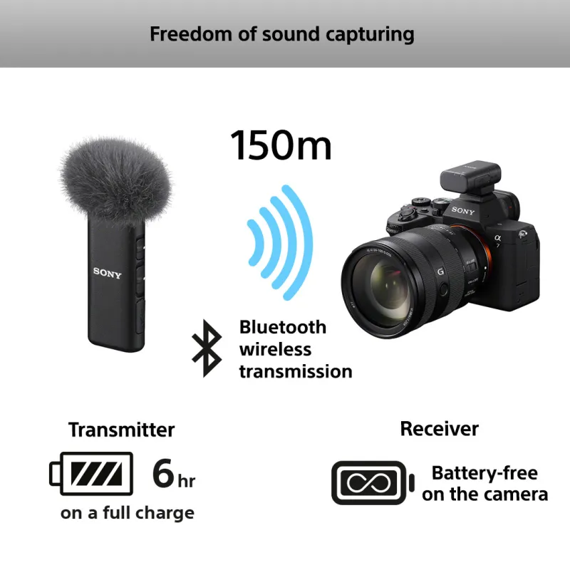 Запись звука никогда не была проще Записываете ли вы интервью или создаете контент дл путешествий, Sony ECM-W3S предлагает простое решение дл создани четкой аудиозаписи где угодно. Благодар компактному дизайну, длительному времени автономной работы (микрофон-передатчик до 6 часов и приемник с питанием от камеры) и радиусу действи беспроводной свзи до 150 м вы можете наслаждатьс записью превосходного звука даже в дороге.