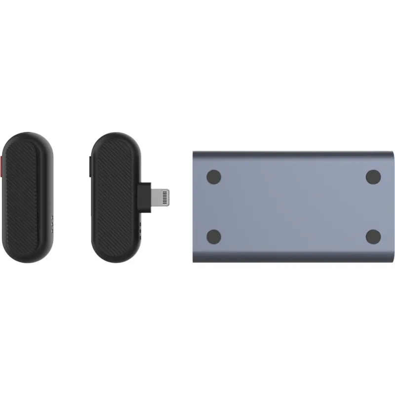 SYNCO for the first time announced a charging case for recording microphone. With this case, charging is as simple as placing the transmitter in the case. The RED light on the transmitter lets you know that it is charging. The receiver side is powered by the phone.
