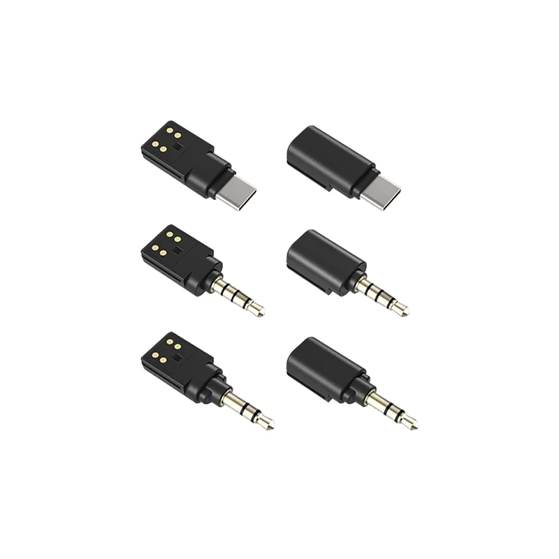 1x Tie pin miniature transmitter with built-in microphone(TX);1x Receiver (RX);1x Wireless charging case ;1x Type-C adapter;1x 3.5 mm TRS adapter;1x 3.5 mm TRRS adapter;1x USB-C to USB-A charging cable (30cm);1x Wind cap;1x User manual;1x 3-year warranty card;1x Colour pack