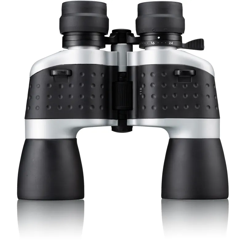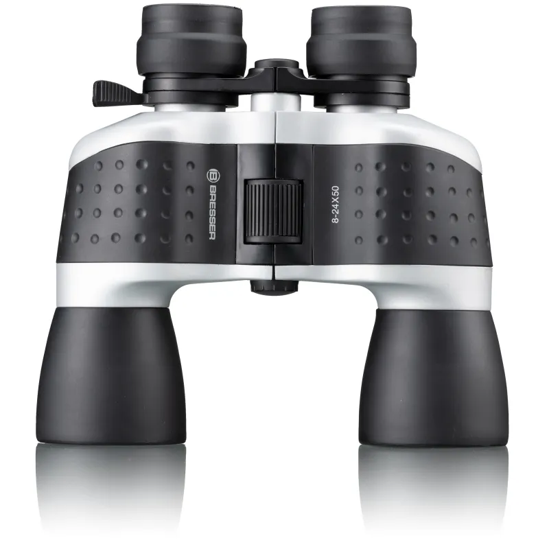 The beautifully shaped BRESSER Topas 8-24x50 Zoom binoculars are a reliable Porro prism binoculars with fully coated optics. The powerful, variable magnification enables the Topas 8-24x50 to be used for many different applications. The magnification can be changed conveniently, via a lever, during use. These practical binoculars feature a diopter adjustment and thanks to the foldable eyecups make them perfectly suitable for spectacle wearers. The partial rubber armouring provides a safe grip and the center focusing wheel ensures easy operation. A tripod thread for an adapter is integrated to make long-term observations more comfortable, with an additionally purchasable binocular adapter (Art no: 1916001 or 4914925).