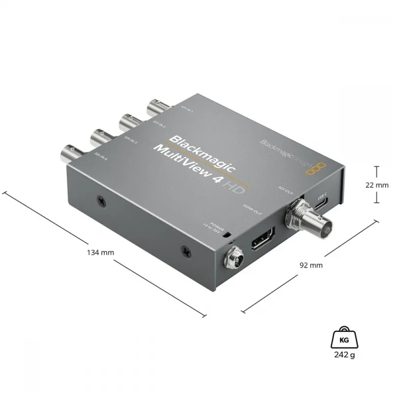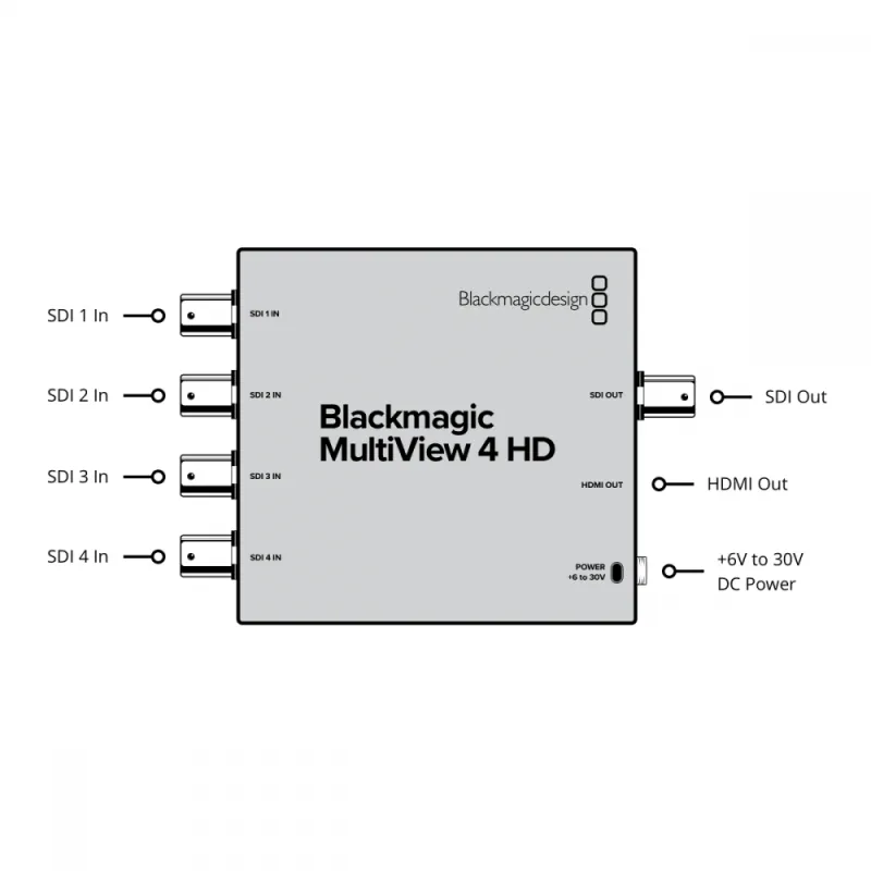 Blackmagic MultiView 4 HD is a new multi viewer that lets customers monitor 4 completely independent SDI video sources on a single display. Customers can monitor any combination of SD and HD formats and frame rates at the same time. Blackmagic MultiView 4 HD features both SDI and HDMI outputs so it can be used with both professional SDI broadcast displays or big screen consumer HD televisions.