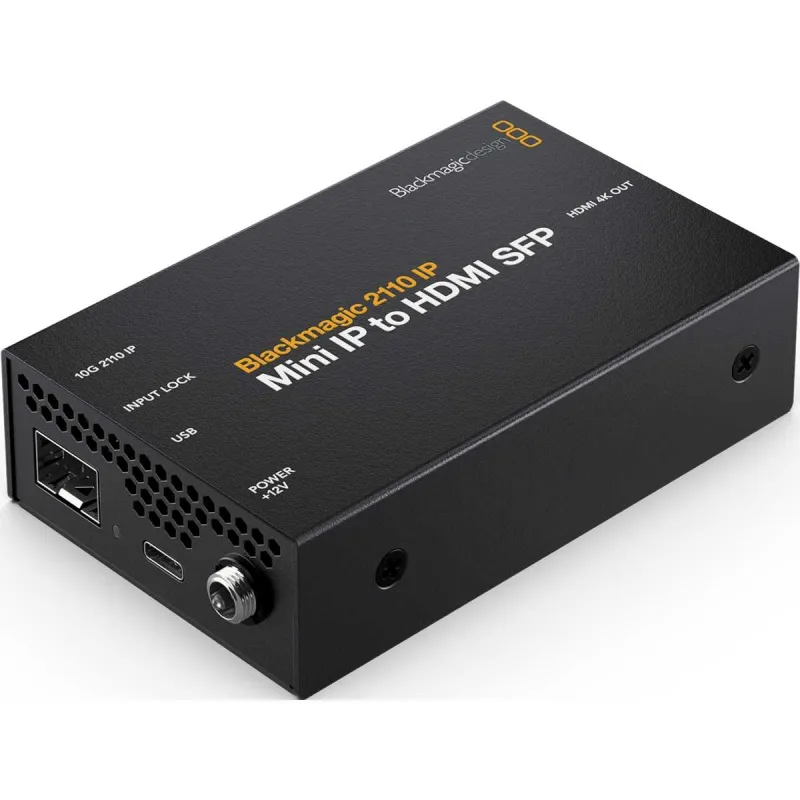 Monitor 2110 IP video and audio on any HDMI monitor or TV. Variant with SFP optical interface supporting HD and Ultra HD standards to 2160p60. Also includes DC power supply. Available from 5/2024.