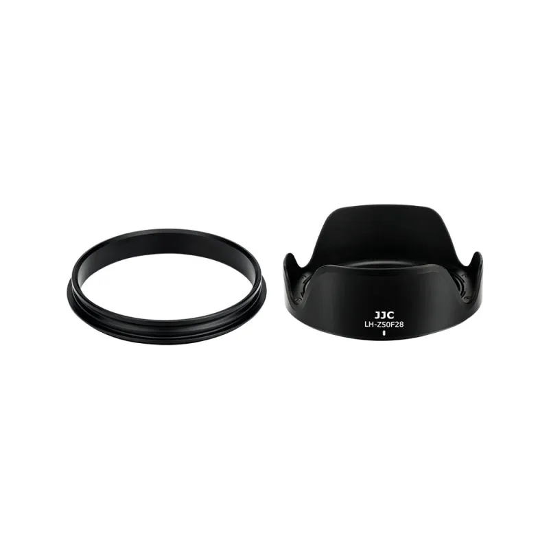 The JJC LH-Z50F28 Sun hood is suitable for use with the Nikon Z MC 50mm F/2.8 lens. A sun hood prevents your photos from contain a lensflare and reduce the chance of a color host. In addition, the LH-Z50F28 also offers extra protection to your front lens.