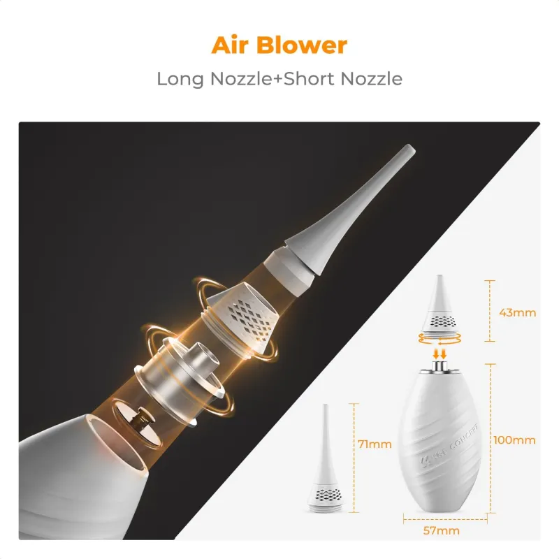 K&F Продвинутый воздушный blower - важный инструмент для фотографов и видеографов, предназначенный для очистки объективов камер, сенсоров и деликатного оборудования. Он оснащен длинными и короткими насадками для точного воздушного потока, эффективно удаляющим пыль без повреждения вашего оборудования.
