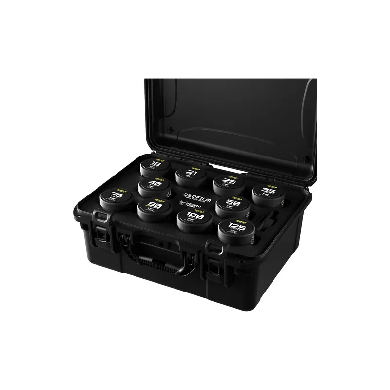 This DZOFilm VESPID Prime Cine 10-Lens Kit is suitable for use on productions ranging from independent to studio films. The included 21, 25, 35, 40, 50, 75, 100, and 125mm T2.1, 16mm T2.8, and Macro 90mm T2.8 PL mount lenses cover full-frame sensors and project a 46.5mm image circle yet are small and lightweight, making them an excellent choice for handheld, gimbal, and drone work.