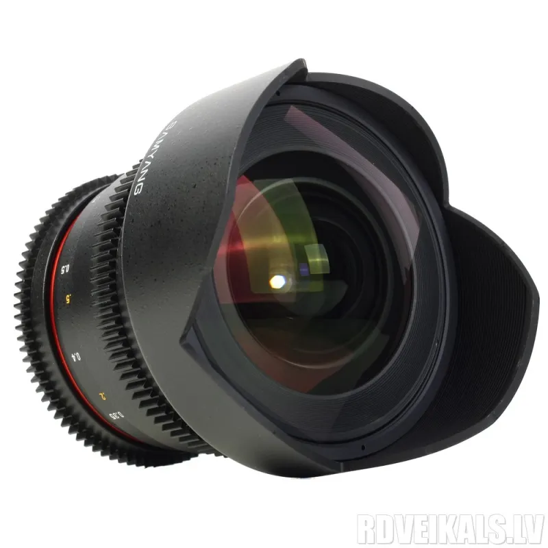Samyang 14mm T3.1 ED AS IF UMC Lens is suitable for DSLRs. Super wide-angle lens for Full-Frame and APS-C sensored cameras. The VDSLR version of the popular 14mm lens has been specifically designed for Video / Cine purposes. This means that the aperture ring has been "de-clicked" providing ultra smooth and quiet control together with a geared focus ring (for follow-focus module attachment).The aperture and focus scale have been relocated to the side of the lens, to aid videographers.