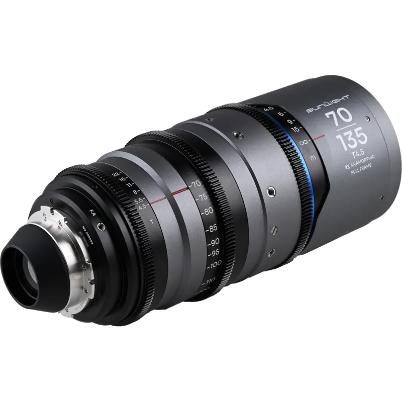 70-135 мм расширет диапазон Sunlight дл более узкого охвата и портретной съемки, сохран тот же передний анаморфный дизайн, постонное сжатие 2x и диафрагму T4.5. Он парфокальный, что позволет выполнть зумирование без перенастройки фокуса, и соответствует 40-80 мм по управлению дл простого A/B сочетани.