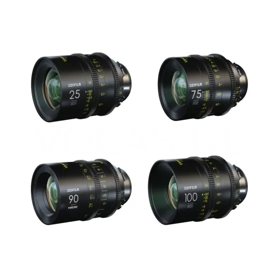 DZOFILM Vespid 4 Lens Kit (25mm, 75mm, 100mm T2.1, Macro 90mm T2.8) - Imperial (PL Mount). Please Note: EF mount tool kit is supplied with this kit with conversion adapters for EF Mount users.