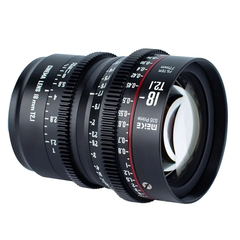 Объектив Meike MK-18mm T2.1 S35 Prime - это пятый кинообъектив компании Meike в серии Super 35 Prime Cine Lens. С окружностью изображения 33,6 мм, полностью покрывающей матрицу камер Super35, он подходит для съемки с разрешением 6K. Он оснащен стандартными для кинематографа кольцами фокусировки 0,8 MOD и зубом диафрагмы.