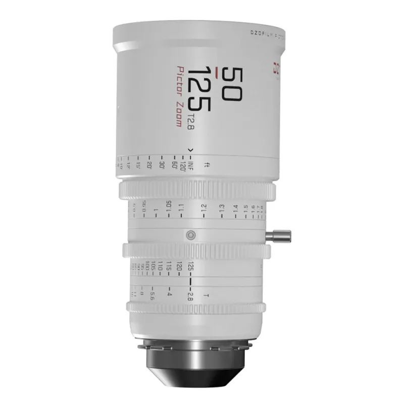 A parfocal cine lens, the DZO Pictor 50 to 125mm T2.8 Super35 Parfocal Zoom Lens features a relatively fast maximum aperture of T2.8 with an aperture range of T2.8 to T22. As you would expect from a cinema-style zoom, the lens is parfocal, meaning it holds focus throughout the zoom range. The internal focus design with floating elements virtually eliminates focus breathing. It covers a Super35 image circle, comes standard with an interchangeable PL mount, and includes a Canon EF mount.