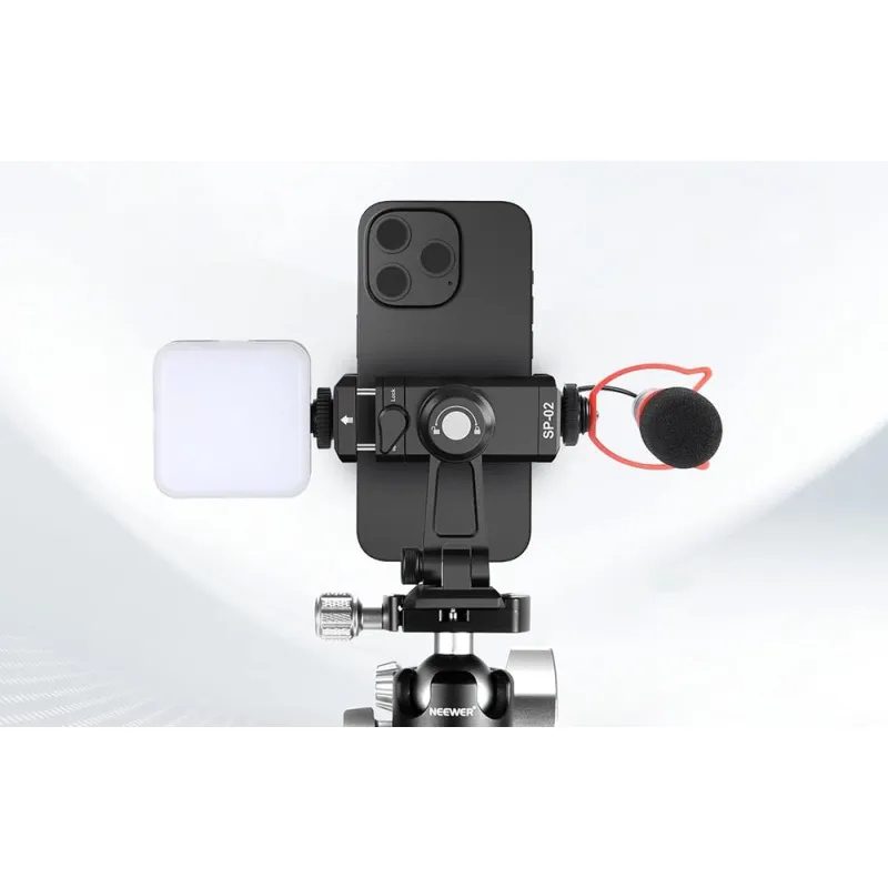 Neewer SP-02 - это надежное решение для кинематографистов, которые записывают с помощью смартфона. Зажим с пружинным механизмом и блокировкой надежно удерживает телефон. Аксессуар поддерживает устройства шириной от 66 до 96 мм, а резиновые накладки защищают края от царапин. Это позволяет записывать, транслировать или фотографировать без стресса.