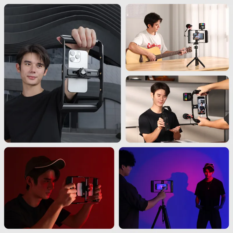 Ulanzi MA05 Universal Phone Cage идеально подходит дл блогеров, кинематографистов и создателей контента, стремщихс профессионализировать свои записи на смартфон. С возможностью прикреплени различных аксессуаров и удаленной съемки, эта телефонна клетка предоставлет гибкость и функциональность, необходимые дл создани качественного мобильного контента.