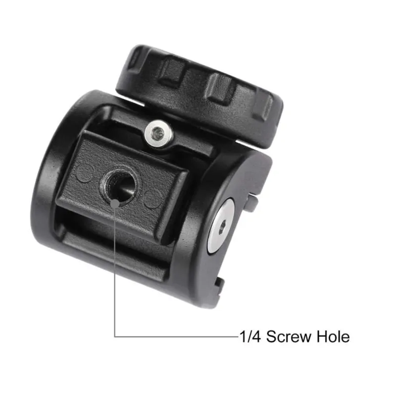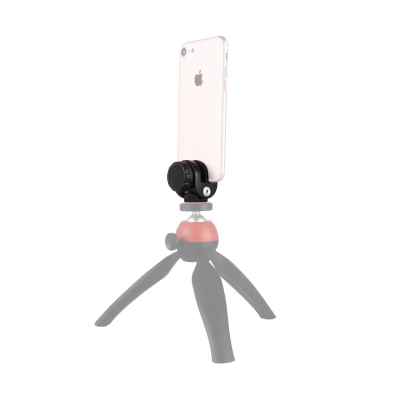 Uniwersalne mocowanie pozwala umieścić smartfon na dowolnym uchwycie z gwintem 1/4 cala np. statyw, głowica obrotowa. Ochronny klips wewnętrzny zapewnia pełne bezpieczeństwo zamontowanego urządzenia. Uchwyt można głowicę 360 stopki oraz posiada dwa tryby, pionowy oraz poziomy.