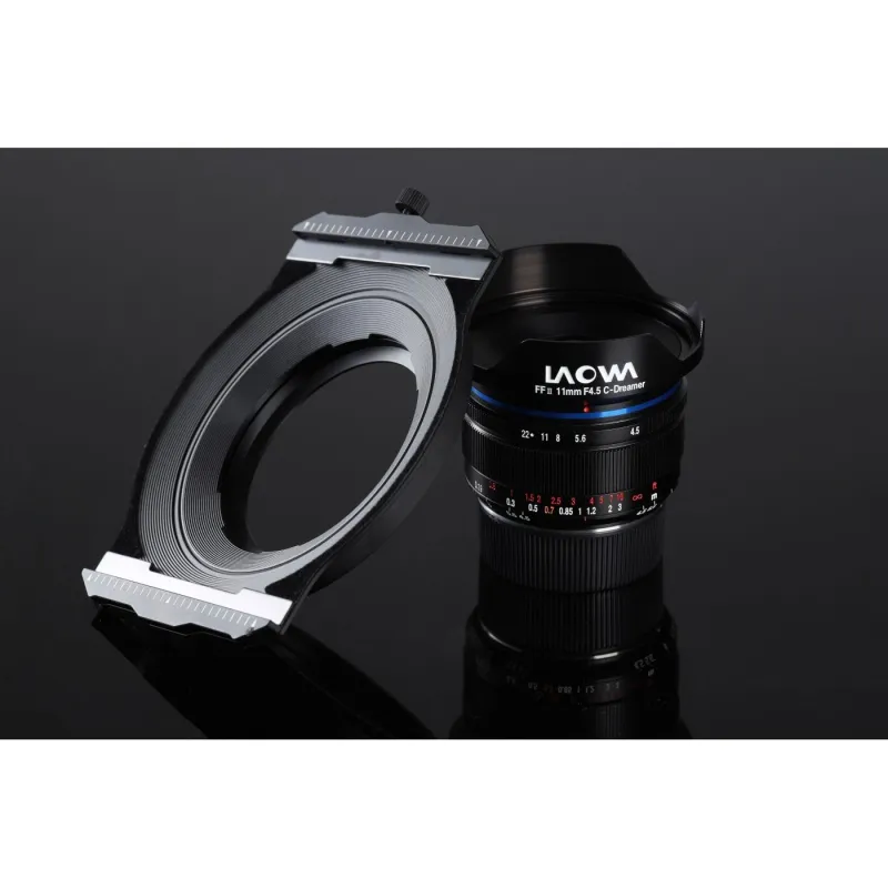 Magnetic filter mount allows you to quickly and securely mount rectangular filters on the Lowa 11mm f/4.5 FF RL lens. Revolution in the world of filters The system using magnets is a long-awaited revolution in the world of filters. It allows a much faster and easier change of filters on the lens. The filters themselves installed in magnetic holders are much better protected against scratches in comparison to traditional holders. The system is compatible with rectangular filters of dimensions 100 x 100 mm and 100 x 150 mm. Tailor-made The mount was created specifically for the Laowa 11mm f/4.5 FF RL lens. All its parts are perfectly matched, so that no unwanted light rays get to the lens. This design effectively eliminates flare and random reflections from your photos. Freedom of creation The system allows you to easily reposition and rotate the filter around the lens axis. This is especially important when using half and polarizing filters. The holder will allow you to easily position the filter in the desired position, matching the horizon line to the filter gradation. You will also be able to mount multiple filters on the mount by "sticking" one on top of the other (to avoid vignetting on the Laowa 11mm f/4.5 FF RL lens (it is suggested to use a maximum of 2 filters at a time). Absolute safety The magnets used by the system provide a very secure hold on the installed filter in most shooting situations. However, if you are afraid of its safety during more vigorous movements you can use the pressure lock. Absolutely secure Frame included One magnetic filter frame is included with the holder. Specification Dimensions: handle: 13.4 x 11.2 x 2.5 cm frame: 10.8 x 16.5 x 0.3 cm Weight: handle: 100 g frame: 15 g color: black Compatibility Laura 11mm f/4.5 FF RL lens 100 x 100 mm rectangular filters rectangular filters 100 x 150 mm Kit contents magnetic filter holder magnetic filter holder magnetic filter holder