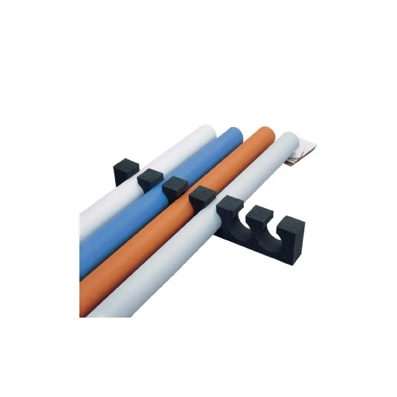 The StudioKing Paper Roll Storage Rack is a useful storage solution for up to 6 paper background rolls. The Storage Rack is made of soft polyurethane foam, which ensures the paper rolls can be stored easily and are protected against damage. The Storage Rack is equipped with double-sided mounting tape enabling you to easily mount the rack to a clean wall at a height of 1.80 m.