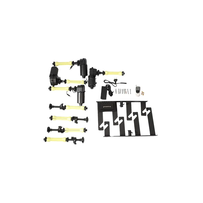 Вы вешаете систему на стену, на потолок или устанавливаете ее на штативы. Затем вы подвешиваете между ними ролики. К держателю роликов прикреплены кабели питания, которые вы подключаете к контроллеру на кронштейне. Все, что вы делаете, - это подключаете мотор и нажимаете кнопку пульта дистанционного управления. С помощью пульта вы выбираете, какой ролик поднимать или опускать. Пульт дистанционного управления работает с 2 батареями 23A (12v). Очень простая система!
