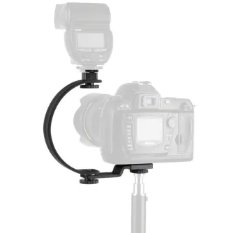 Concentrate on the basics: This is the motto for the walimex C Flash Bracket. You can mount lights, compact flashes or microphones next to your camcorder or camera. Thanks to the sophisticated C-shape, it is even possible to mount camcorder with opened display without problems.