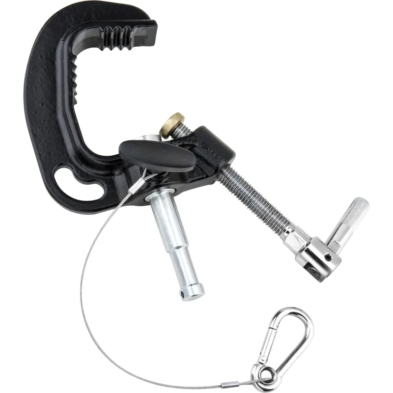 Оснащенный 16-мм детским штифтом дл большинства осветительных приборов ТВ/студии, этот зажим подходит дл труб диаметром от 38 мм до 60 мм. Коротка ручка предотвращает заедание ручки с осветительным прибором во врем работы. Изготовленный из чугунного лить, он прочный и долговечный. В комплект входит страховочный кабель.