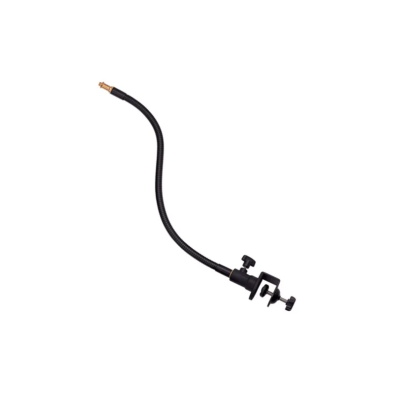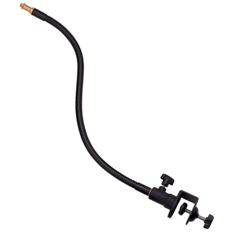 The Falcon Eyes NMBG48M + CL-35FL Flex Arm + Table Clamp is a bendable spigot adapter equipped with a 3/8 male thread. The flex-arm is equipped with a table clamp on one end and a spigot adapter on the other end. The table clamp can be clamped onto tubes, boards or tables up to 3.5cm thick. A lamp or piece of Styrofoam for example, can be mounted on the spigot and positioned into place.
