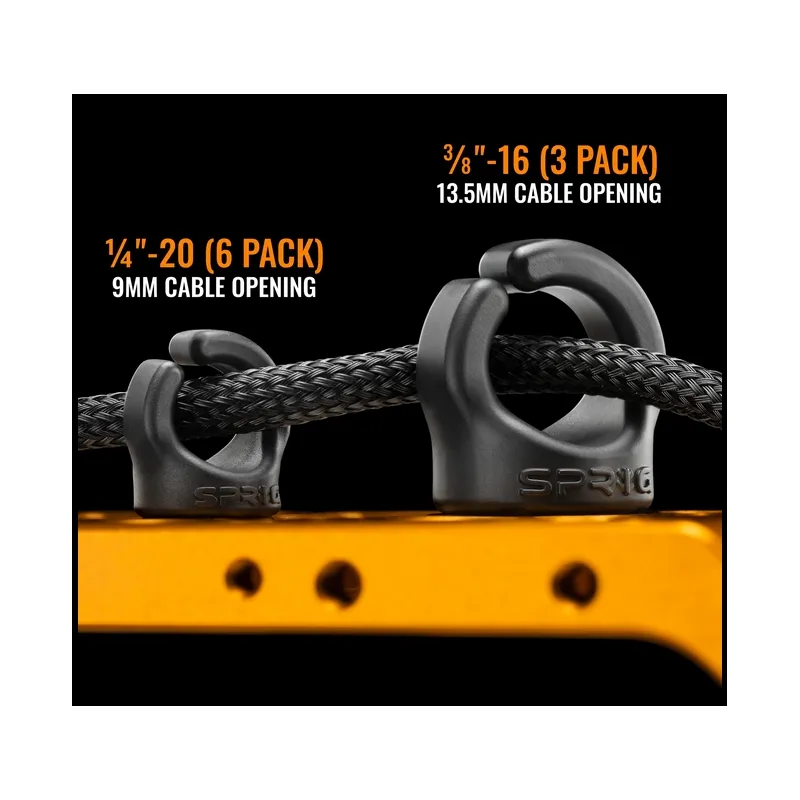 Offered as a 6-pack, the black Sprig Cable Management Device presents filmmakers and sound recordists with a fast, convenient, and simple solution for keeping cable runs tidy on their cinema equipment and camera rigs. With a quick twist, it can be installed in or removed from a 3/8"-16 threaded hole in a hurry. Since it is constructed from a durable injection-molded material, it can withstand the rigors of life on location.