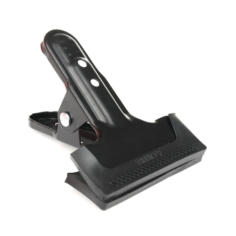 The Caruba Heavy Duty Clamp is an ideal tool in the studio and versatile in use. A powerful spring ensures that it can hold anything with great force, such as clamping tools, hanging a flash unit or background cloth, or stopping a roll of background paper from unwinding. The clamp is finished with rubber to prevent damage.
