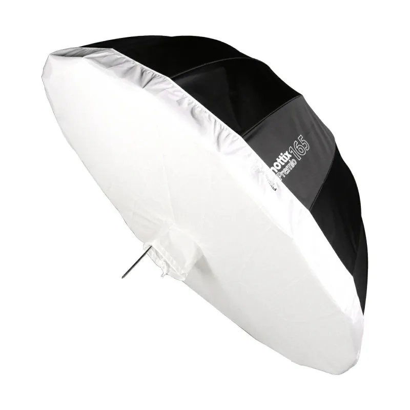Белый рассеиватель Premio 165 предназначен для отражающего зонта того же диаметра. Его можно легко и быстро установить на зонт, обеспечив излучение света, аналогичное софтбоксу.