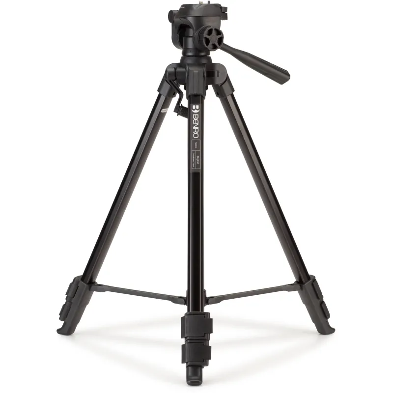 Цифровой алюминиевый штатив T800EX с 3-сторонней поворотной/наклонной головкой от Benro - это начальный уровень поддержки камеры, выдерживающий до 4,4 фунтов. Он имеет 3 секции ног, которые выдвигаются и фиксируются с помощью откидных замков, а средняя распорка добавляет общую устойчивость. Центральная колонна с зубчатым механизмом позволяет быстро и просто отрегулировать высоту камеры.