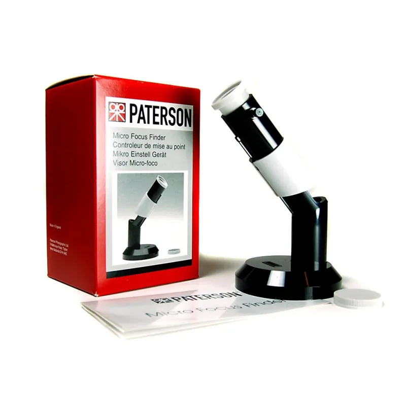 Микрофокусный искатель Paterson предназначен для получения сильно увеличенного изображения изображения, которое проецируется на подставку увеличителя. Это позволяет четко сфокусировать зернистую структуру негатива при настройке изображения перед экспонированием печатной бумаги.