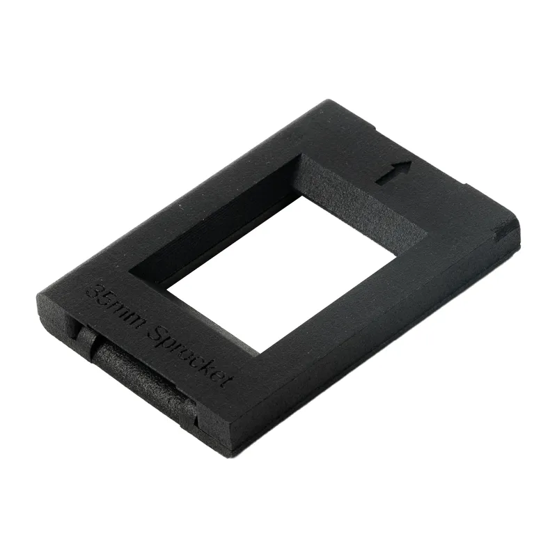 All VALOI holders utilize a double S-curve design, where the film slot is curved before and after the scanning gates. By curving the film in the Sprocket holder slightly in one direction on both sides of the film, greater flatness is achieved than would be possible with a straight slot.