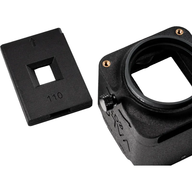 The easy35 110 holder can scan 16 mm wide 110 film, with a frame size of 13x17 mm or smaller. This holder is part of the easy35 system, just like any other compatible holder - by removing the existing holder and inserting the new one.