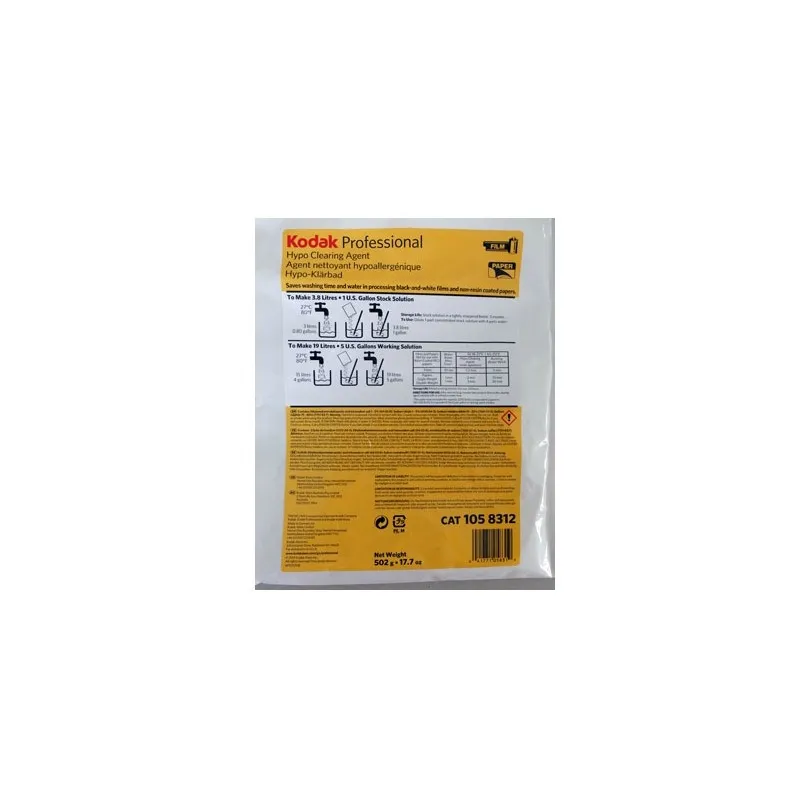 Kodak Hypo Clearing Agent for film and paper to make 19 litres of working solution. It saves washing time and water in processing black and white films and non-resin coated papers.