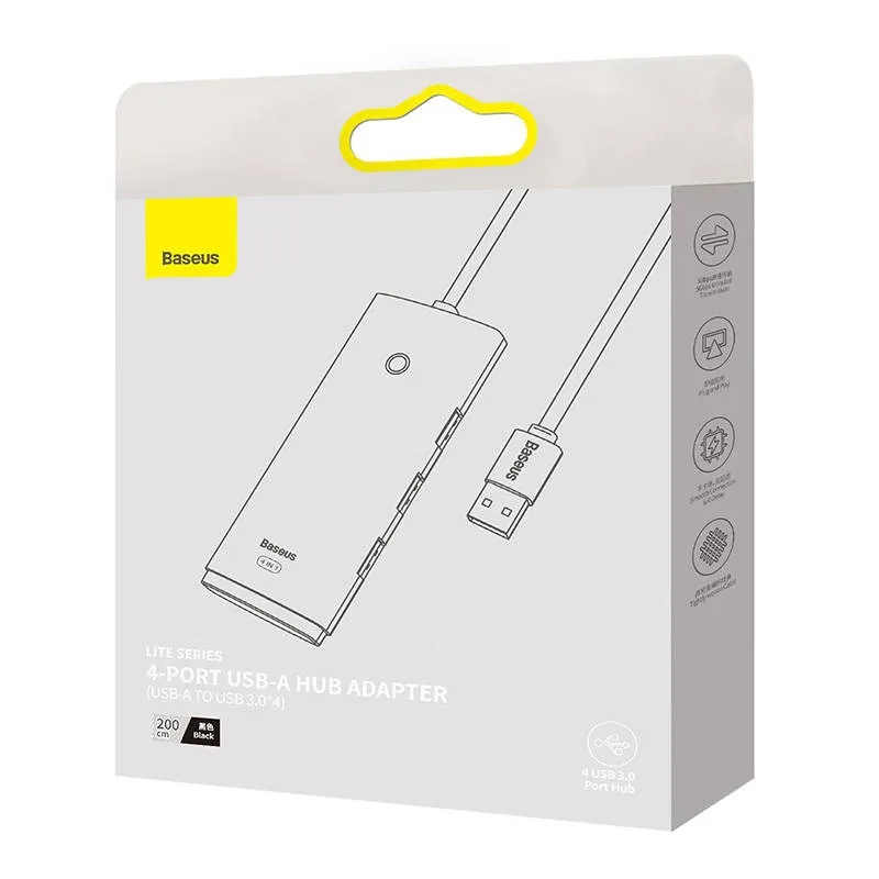 Expand your possibilities and get 4 in 1 Baseus Lite Series hub. This product is equipped with 4 USB 3.0 ports, so you can transfer files with speeds up to 5 Gbps. Thanks to plug&play operation you can use the hub without installing any additional software, and thanks to wide compatibility the product will work regardless of the system you are currently working on.