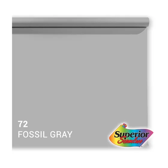 This roll of Superior Specialties backdrop paper is a 2.72 x 11m roll in the color 72. Fossil Gray, or light grey. With this roll of professional quality paper you can create a smooth, even background.